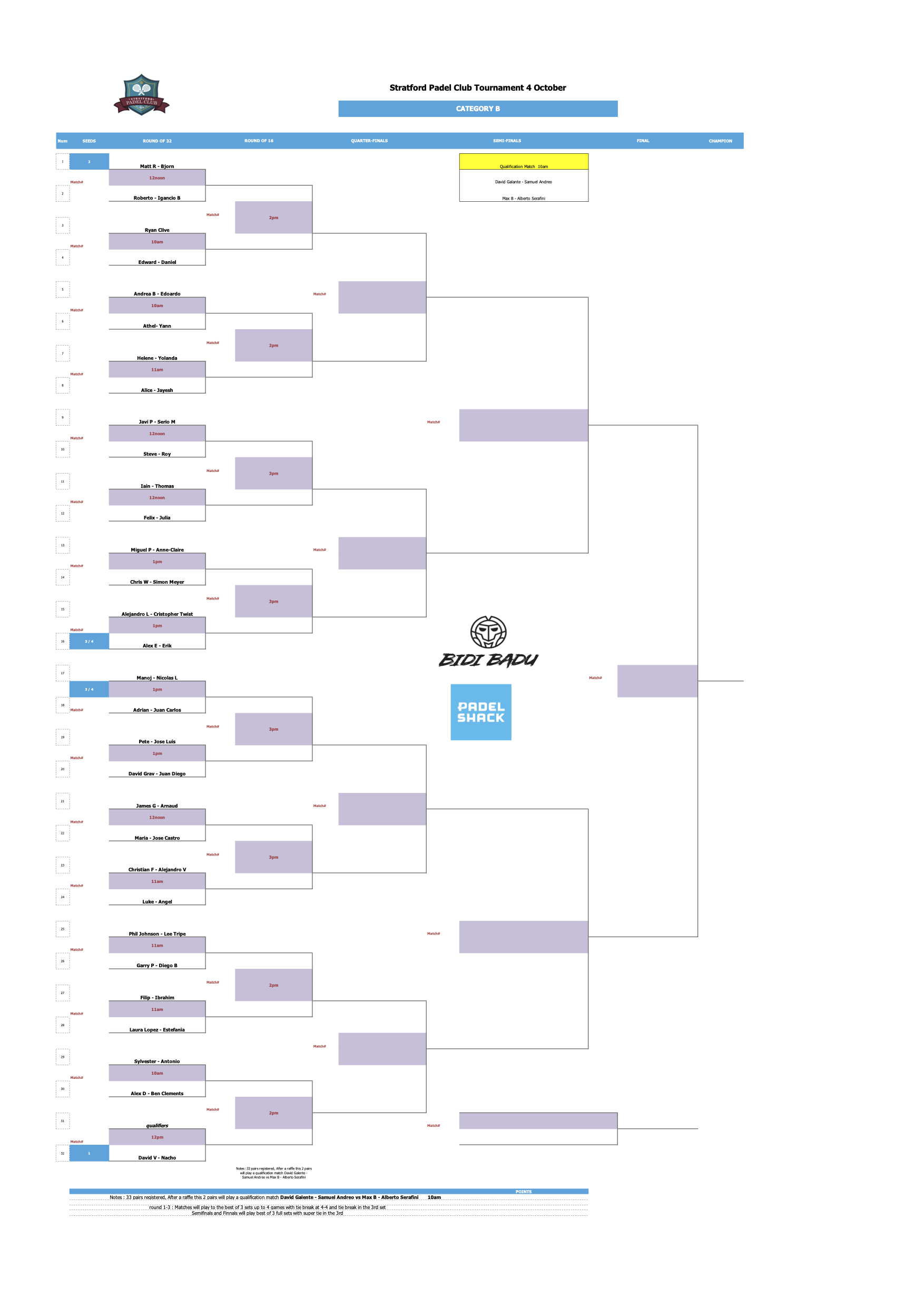 SPC October Tournament - B Draw enclosed 02/10/2020 Players, please make sure your registration fee has been paid today 2 Oct to ensure your participation.